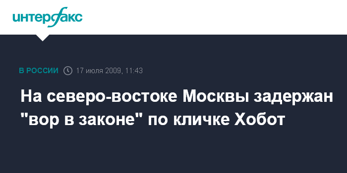На северо-востоке Москвы задержан "вор в законе" по кличке Хобот