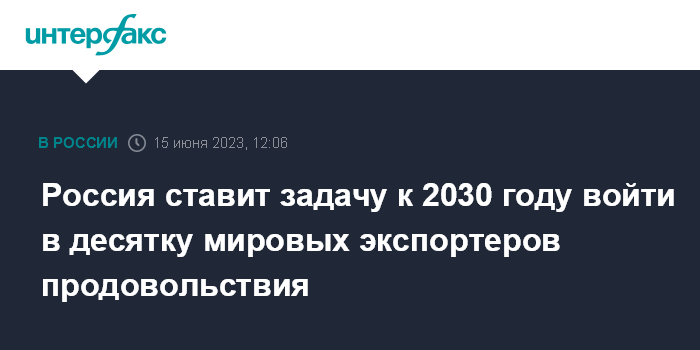 Россия ставит задачу к 2030 году войти в десятку мировых экспортеров продовольствия