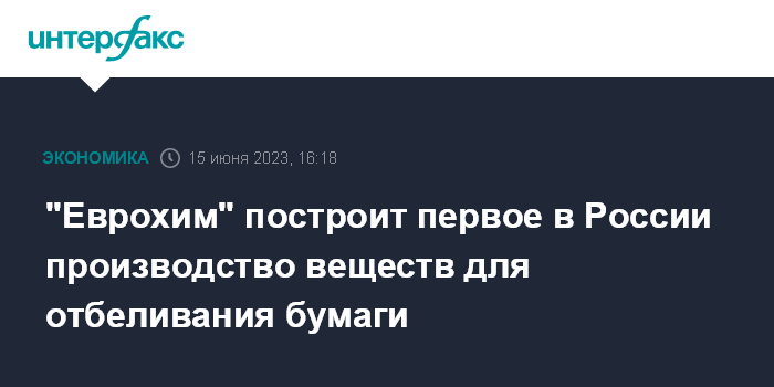 "Еврохим" построит первое в России производство веществ для отбеливания бумаги