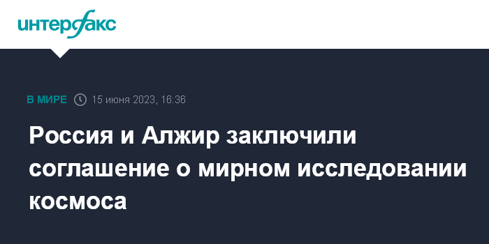 Москва. 15 июня. INTERFAX.RU - Российско-алжирское межправительственное соглашение о мирном исследовании космоса подписано в ходе визита президента Алжира Абдельмаджида Теббуна.