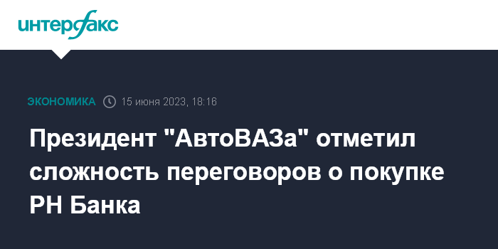 Президент "АвтоВАЗа" отметил сложность переговоров о покупке РН Банка