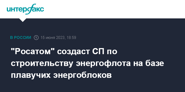 Москва. 15 июня. INTERFAX.RU - ГК "Росатом" и "ТСС Групп" в рамках ПМЭФ-2023 подписали соглашение об основных условиях создания энергофлота для зарубежных рынков на базе плавучих энергоблоков (ПЭБ) с реакторами РИТМ-200М, сообщила госкорпорация.