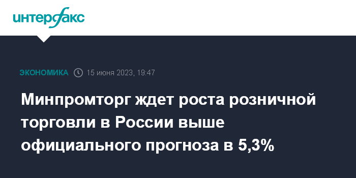 По итогам 2022 года снижение оборота розничной торговли в стране, по данным Росстата, составило 6,7%. Минэкономразвития в апреле представило обновленный макроэкономический прогноз, согласно которому розничная торговля должна вырасти в этом году на 5,3%. Опрошенные "Интерфаксом" в начале июня аналитики прогнозируют в 2023 году рост розницы на 2,8%.