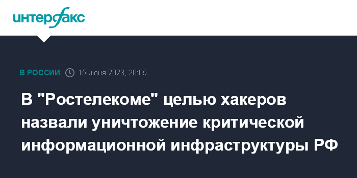 Москва. 15 июня. INTERFAX.RU - Хакеры, атакующие российские ресурсы с 24 февраля 2022 года, с февраля 2023 года целенаправленно работают над взломом и уничтожением критической информационной инфраструктуры, заявил на ПМЭФ старший вице-президент по информационной безопасности ПАО "Ростелеком", гендиректор "РТК-Солар" Игорь Ляпунов.
