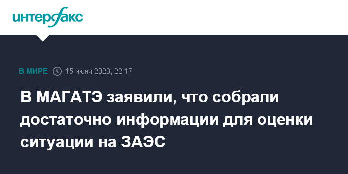 Москва. 15 июня. INTERFAX.RU - Команда МАГАТЭ в ходе визита на Запорожскую АЭС собрала достаточное количество информации для оценки ситуации на объекте, заявил в четверг гендиректор агентства Рафаэль Гросси.