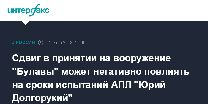 Сдвиг в принятии на вооружение "Булавы" может негативно повлиять на сроки испытаний АПЛ "Юрий Долгорукий"