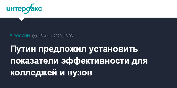 Москва. 16 июня. INTERFAX.RU - Президент РФ Владимир Путин предлагает формировать показатели эффективности для колледжей и вузов, а также готовить пятилетний прогноз по потребностям экономики в кадрах.