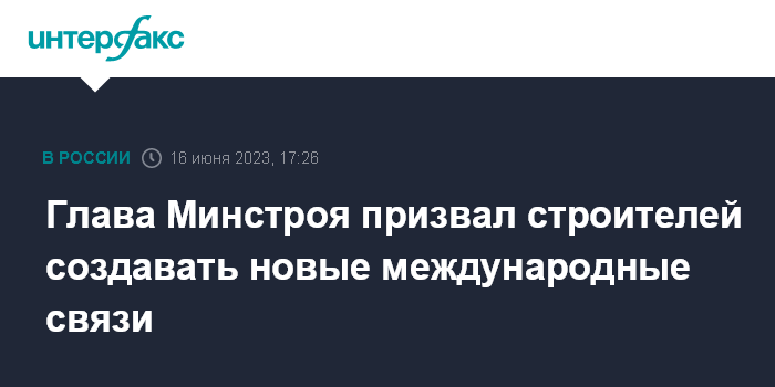 Москва. 16 июня. INTERFAX.RU - Для строительной отрасли важно формировать новые международные отношения, заявил на ПМЭФ-2023 порталу "всеостройке.рф" министр строительства и ЖКХ Ирек Файзуллин.