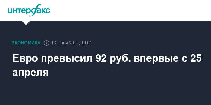 Евро превысил 92 руб. впервые с 25 апреля