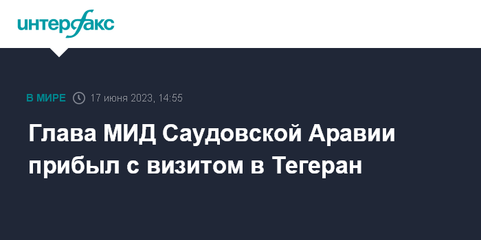 Москва. 17 июня. INTERFAX.RU - Глава МИД Саудовской Аравии принц Фейсал бен Фархан Аль-Сауд в субботу начал визит в Тегеран, передает Al Arabiya.