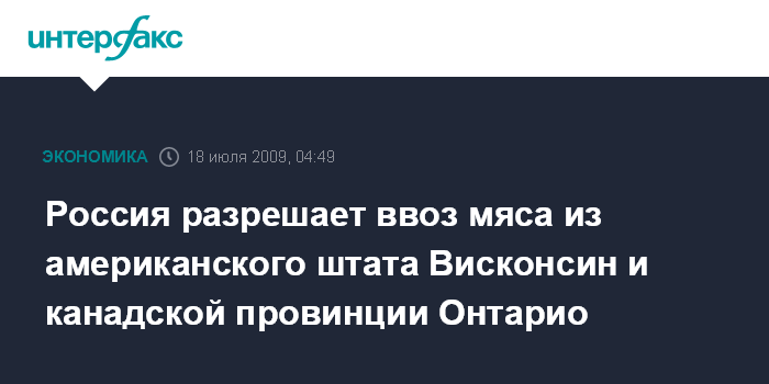 Россия разрешает ввоз мяса из американского штата Висконсин и канадской провинции Онтарио