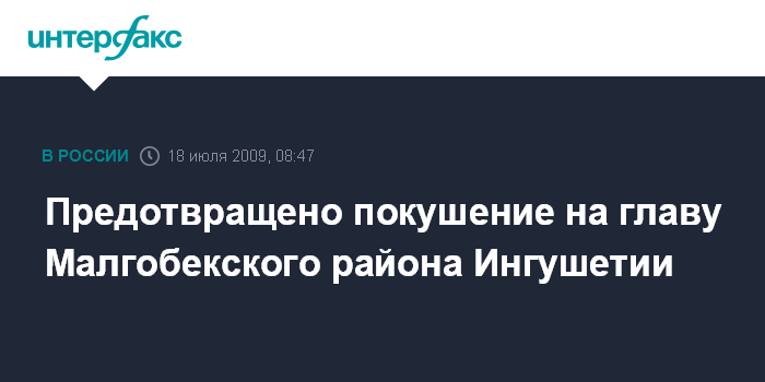 Предотвращено покушение на главу Малгобекского района Ингушетии