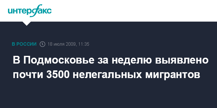 Москва. 18 июля. INTERFAX.RU - Сотрудники управления ФМС по Московской области совместно с ГУВД региона с 11 по 17 июля провели операцию "Нелегальный мигрант", в ходе которой был выявлен 3461 иностранец, находящийся в Подмосковье незаконно, сообщили "Интерфаксу" в пресс-службе УФМС по Московской области в субботу.