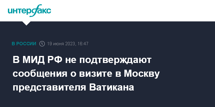 В МИД РФ не подтверждают сообщения о визите в Москву представителя Ватикана