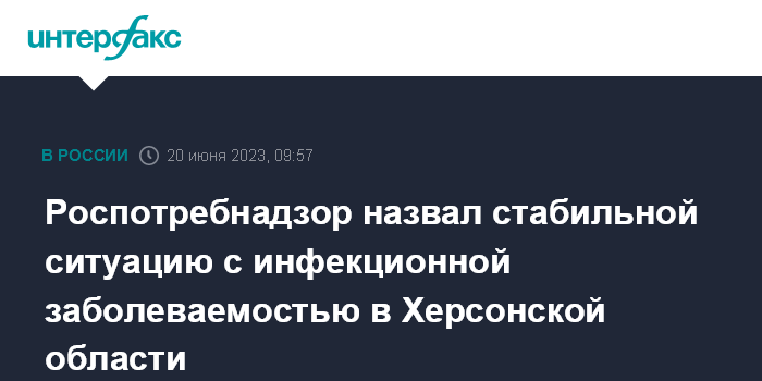 Москва. 20 июня. INTERFAX.RU - Ситуация с инфекционной заболеваемостью в Херсонской области остаётся стабильной, продолжается контроль за проведением дезинфекционных мероприятий и комплексный мониторинг качества питьевой воды, сообщили в Роспотребнадзоре.