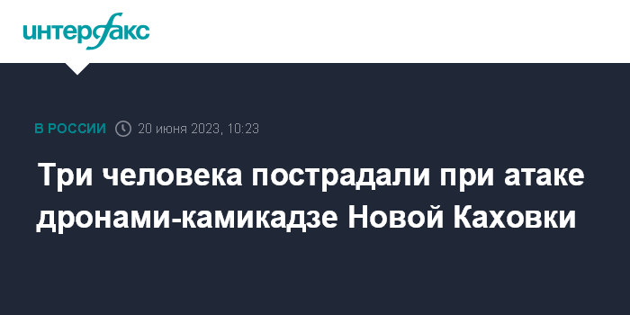Москва. 20 июня. INTERFAX.RU - Новая Каховка в Херсонской области подверглась во вторник атаке украинских беспилотников, три человека ранены, сообщили журналистам в оперативном штабе города.