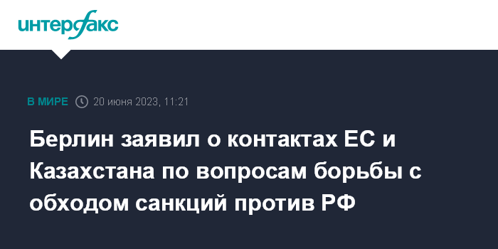 Берлин заявил о контактах ЕС и Казахстана по вопросам борьбы с обходом санкций против РФ
