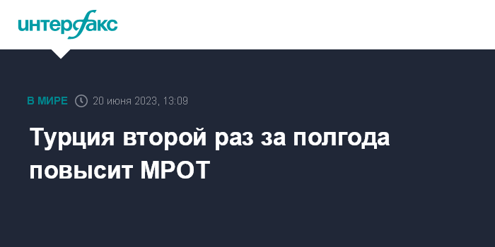 Москва. 20 июня. INTERFAX.RU - Турция повышает минимальный размер оплаты труда (МРОТ) во второй раз за последние полгода.