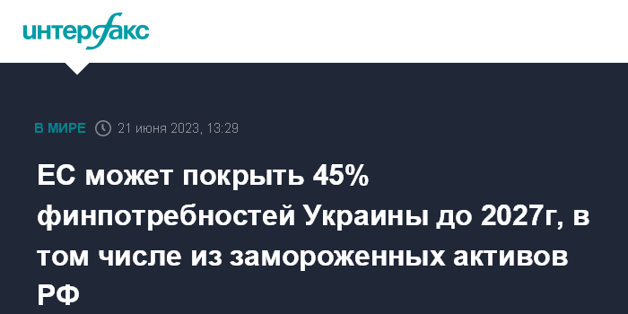 ЕС может покрыть 45% финпотребностей Украины до 2027г, в том числе из замороженных активов РФ