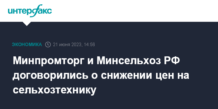 Минпромторг и Минсельхоз РФ договорились о снижении цен на сельхозтехнику