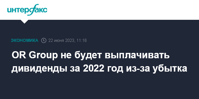 OR Group не будет выплачивать дивиденды за 2022 год из-за убытка