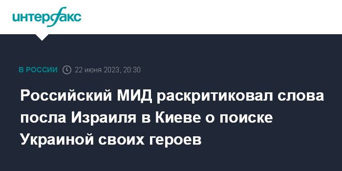 Москва. 22 июня. INTERFAX.RU - В МИД РФ подвергли критике заявления посла Израиля в Киеве Михаила Бродского о поиске Украиной своих героев и собственной идентичности.