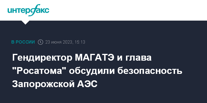 Москва. 23 июня. INTERFAX.RU - Российская делегация обсудила с представителями МАГАТЭ в пятницу в Калининграде вопросы ядерной безопасности Запорожской АЭС (ЗАЭС), сформулированные главой Агентства Рафаэлем Гросси в Совете безопасности ООН, дальнейшие шаги МАГАТЭ в этой сфере.