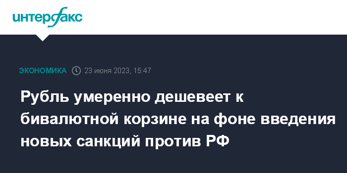 Рубль умеренно дешевеет к бивалютной корзине на фоне введения новых санкций против РФ