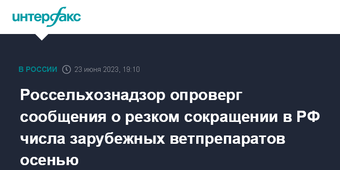 Россельхознадзор опроверг сообщения о резком сокращении в РФ числа зарубежных ветпрепаратов осенью