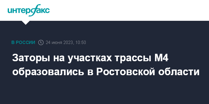 "В ночь с 23 на 24 июня 2023 г. в связи со сложившейся ситуацией на трассе М4 образовались заторы в районе следующих муниципалитетов: Миллеровский район - пробка около 2 км; г. Каменск-Шахтинский, Каменский район - пробка около 3 км, ведется разбор отбойников; Красносулинский район, г.Шахты, г.Новошахтинск - пробка около 4 км", - сообщили журналистам в министерстве региональной политики и массовых коммуникаций Ростовской области в субботу.