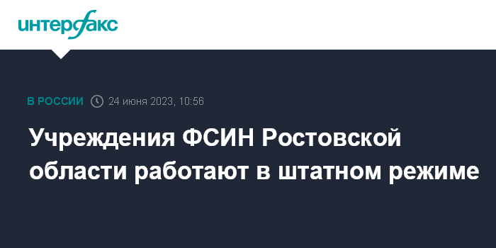 Москва. 24 июня. INTERFAX.RU - Исправительные учреждения на территории Ростовской области работают в обычном режиме, беспорядков не зафиксировано, сообщили в пресс-службе регионального ГУ ФСИН.