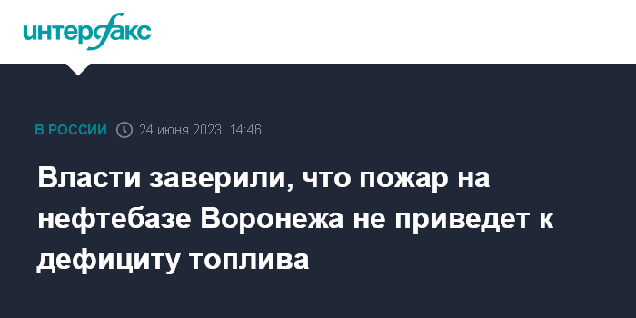 Москва. 24 июня. INTERFAX.RU - Губернатор Воронежской области Александр Гусев заверил, что дефицита топлива в регионе после пожара на нефтебазе в Воронеже, нет.