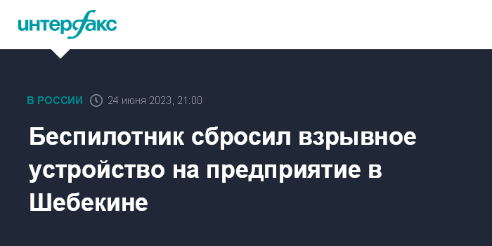 Москва. 24 июня. INTERFAX.RU - Губернатор Белгородской области Вячеслав Гладков сообщил о сбросе взрывного устройства с беспилотника в городе Шебекино.