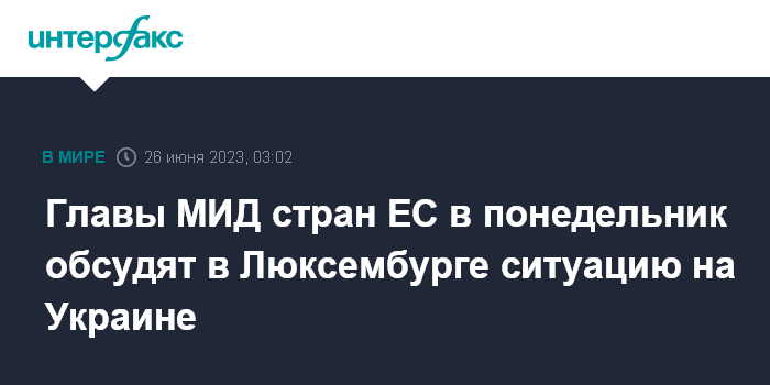 Москва. 26 июня. INTERFAX.RU - Совет ЕС по иностранным делам, который будет в понедельник заседать в Люксембурге, обсудит ситуацию на Украине после обмена мнениями в режиме видеоконференции с главой украинского МИД Дмитрием Кулебой, сообщается в материалах к совещанию.