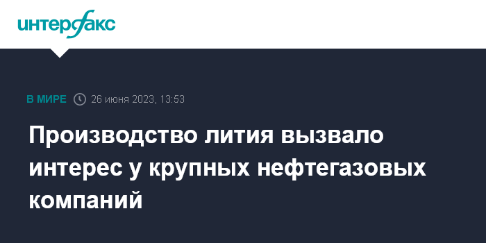Москва. 26 июня. INTERFAX.RU - Крупнейшие нефтегазовые компании мира проявляют активный интерес к литию в надежде на технологический прорыв в производстве металла, необходимого для аккумуляторов электромобилей, пишет Financial Times.