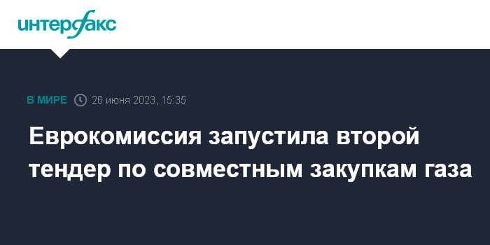 Москва. 26 июня. INTERFAX.RU - Еврокомиссия (ЕК) объявила в понедельник о втором раунде сбора предложений по совместным закупками газа для ЕС.