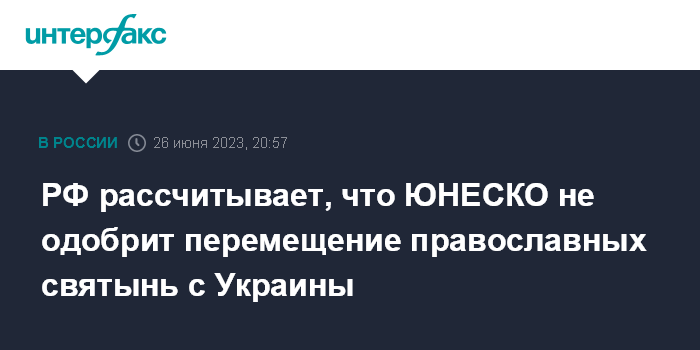 РФ рассчитывает, что ЮНЕСКО не одобрит перемещение православных святынь с Украины