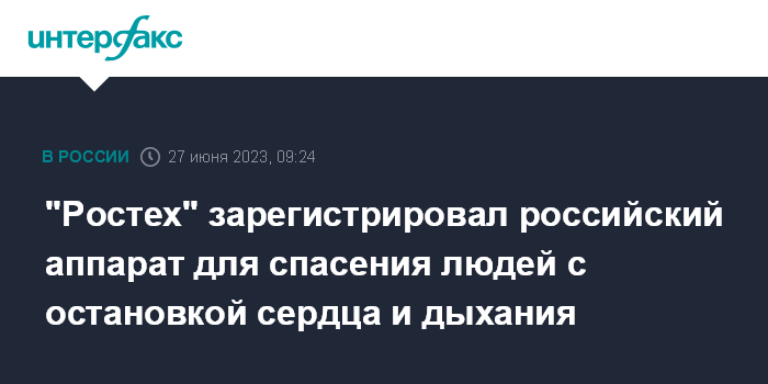 Москва. 27 июня. INTERFAX.RU - Госкорпорация "Ростех" получила регистрационное удостоверение на аппарат экстренного восстановления кровообращения, он поможет спасать жизни пациентов при внезапной остановке сердца и при острой дыхательной недостаточности, сообщили в пресс-службе госкорпорации.