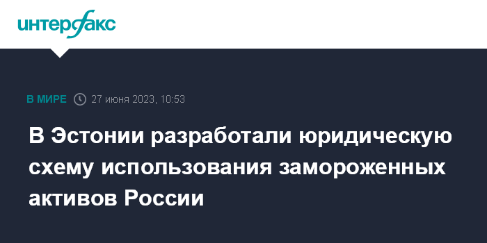 Москва. 27 июня. INTERFAX.RU - Эстония стала первой европейской страной, создавшей юридическую схему использования замороженных российских активов для помощи Украине, в ближайшие недели она должна получить одобрение правительства, сообщают во вторник эстонские СМИ.