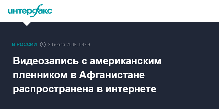 Москва. 20 июля. INTERFAX.RU - Видеозапись, на которой запечатлен американский солдат, захваченный талибами в конце июня в афганской провинции Пактика, распространена в интернете, сообщает американский телеканал Си-Эн-Эн.
