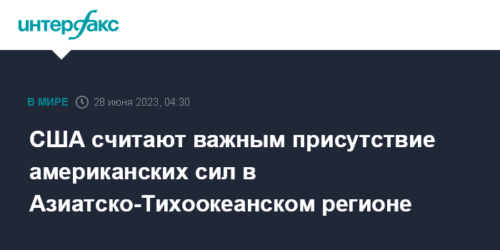 США считают важным присутствие американских сил в Азиатско-Тихоокеанском регионе