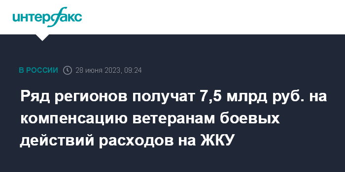 Ряд регионов получат 7,5 млрд руб. на компенсацию ветеранам боевых действий расходов на ЖКУ