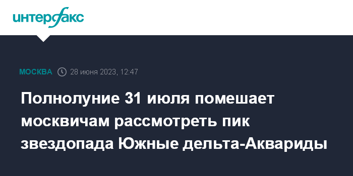 На сайте столичного планетария уточняется, что в 2023 году условия наблюдения метеоров Южных дельта-Акварид неблагоприятные, в ночь максимума Луна будет полной на 95%. Полнолуние помешает наблюдениям метеоров.