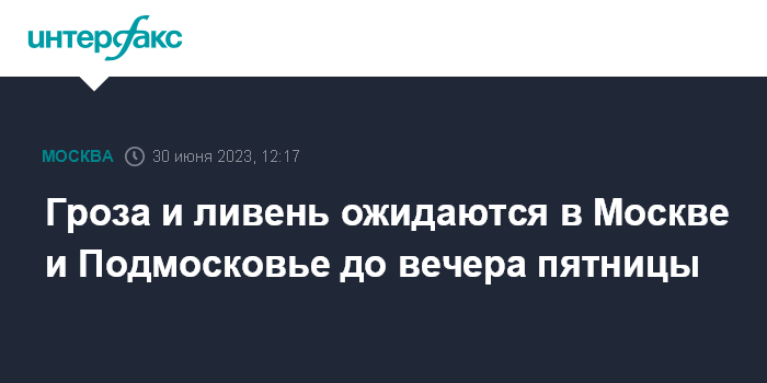 Гроза и ливень ожидаются в Москве и Подмосковье до вечера пятницы