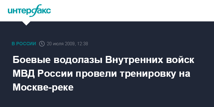 Москва. 20 июля. INTERFAX.RU - В акватории Москвы-реки звено сторожевых катеров Центрального регионального командования и боевая подгруппа водолазов Центра специального назначения Внутренних войск МВД России провели совместную тренировку.