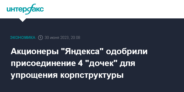 Акционеры "Яндекса" одобрили присоединение 4 "дочек" для упрощения корпструктуры