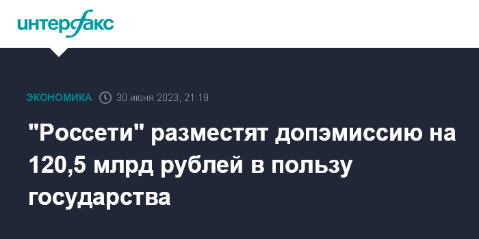 "Россети" разместят допэмиссию на 120,5 млрд рублей в пользу государства