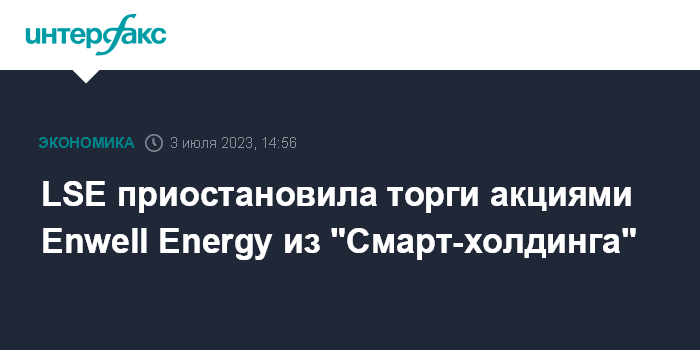 LSE приостановила торги акциями Enwell Energy из "Смарт-холдинга"