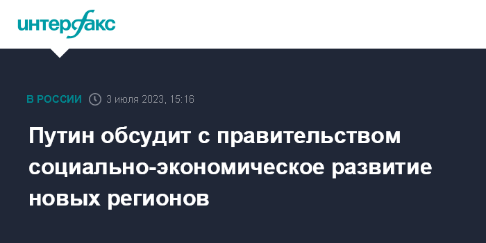 Путин обсудит с правительством социально-экономическое развитие новых регионов