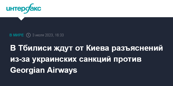 Основатель Georgian Аirways Тамаз Гаиашвили ранее заявил журналистам, что считает решение украинской стороны по санкциям "политически мотивированным".